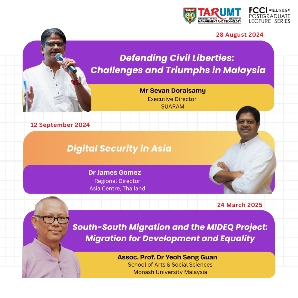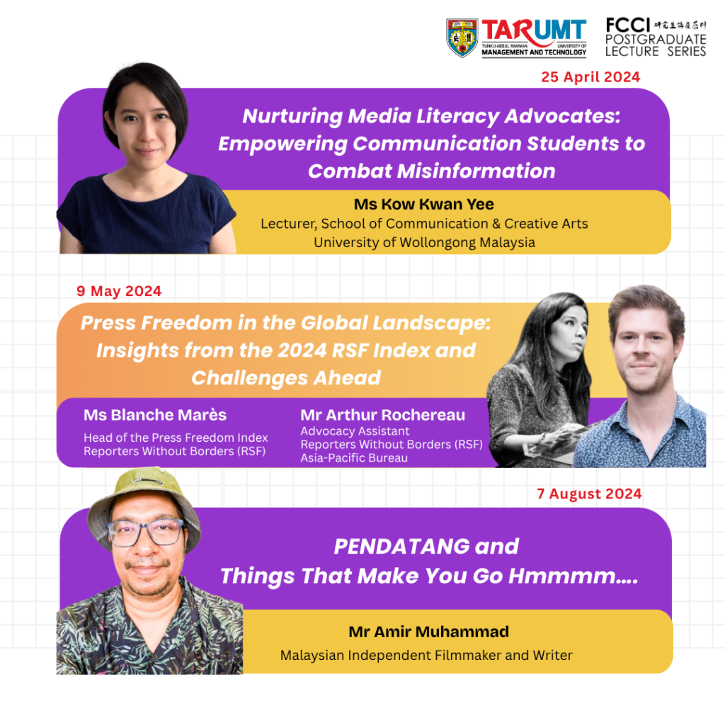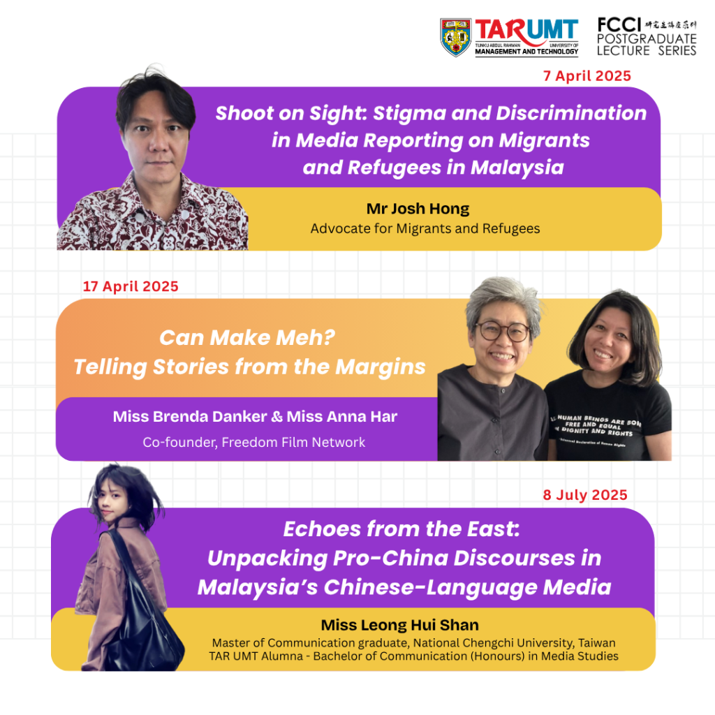 What made this journey even more meaningful for me was that three of my students from the Bachelor of Communication (Honours) in Media Studies programme, Chang Kar Kei, Chung Jia Ee, and Oon Jin Xuan, who were also the third cohort students of the Master’s programme, helped me organise the first three sessions. This laid the foundation for the tradition of Master’s students assisting with the FCCI Postgraduate Lecture Series. In each subsequent semester, newly enrolled students continued to assist me with organising the lectures.
