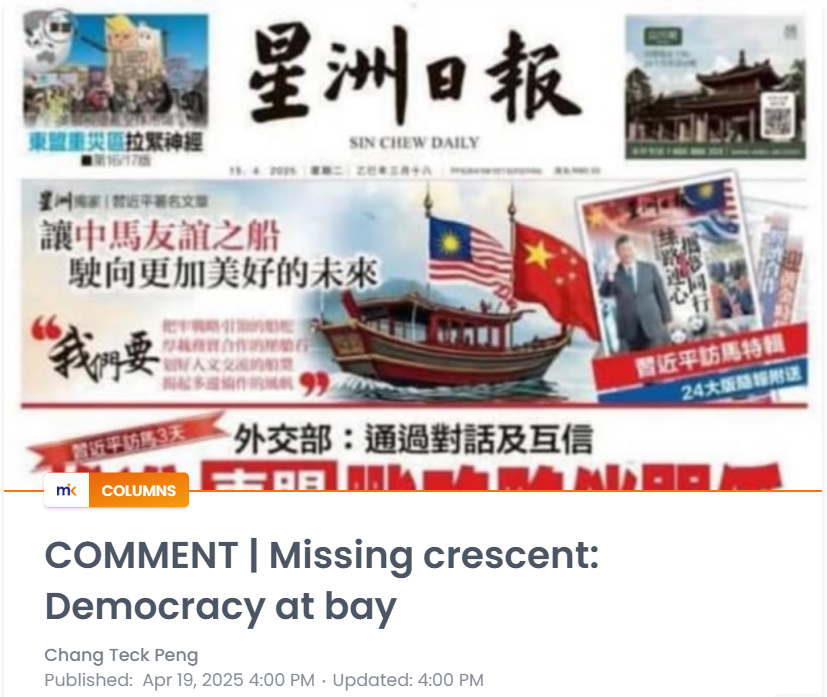 “Missing crescent: Democracy at bay” is my comments on the national flag error by Sin Chew Daily. It was published in Malaysiakini on 19 April 2025.